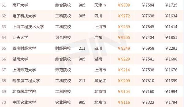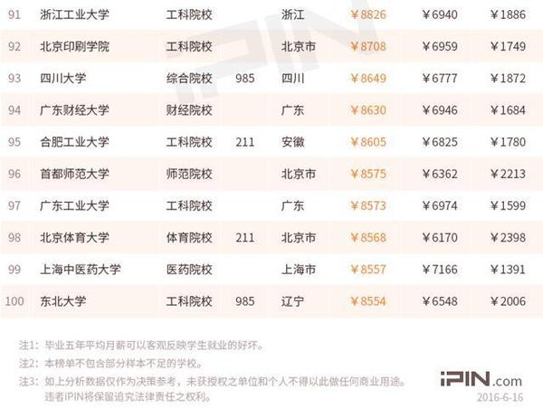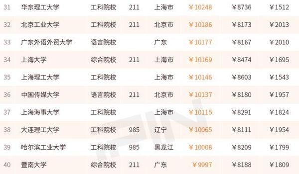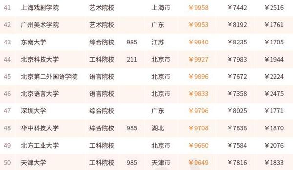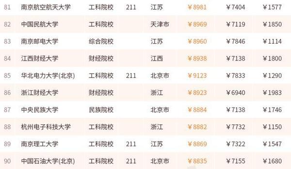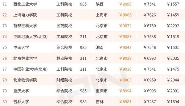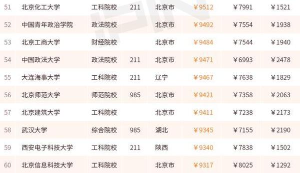 上圖就是國內(nèi)工資最高的一百所大學(xué)。