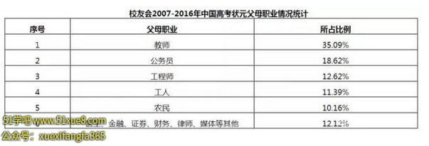 4、高考狀元們父母的職業(yè),以公務(wù)員和教師為主。