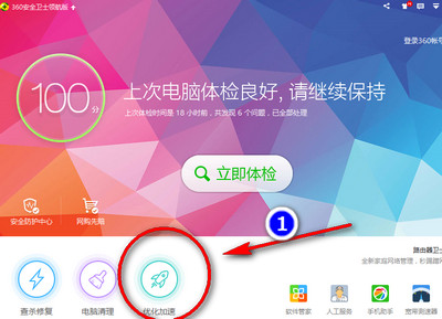 1、打開(kāi)360安全衛(wèi)士,點(diǎn)擊“優(yōu)化加速”