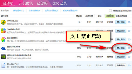 3、不想開(kāi)機(jī)啟動(dòng)的軟件,點(diǎn)擊其后方的“禁止啟動(dòng)”