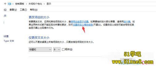 第四步:、然后,點(diǎn)擊“更改項(xiàng)目的大小”下面的“設(shè)置自定義縮放級別”。