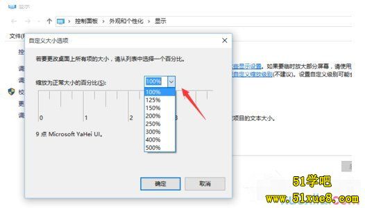 第五步:這里,選擇100%,就代表著正常的縮放級別。很多人之所以感覺字體模糊,問題就出現(xiàn)這個(gè)地方,所以,改成100%就好了,但要記得點(diǎn)擊“確定”,在點(diǎn)擊“應(yīng)用”。
