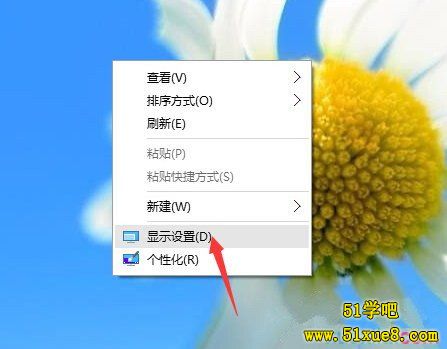 第一步:在Win10的桌面點(diǎn)擊鼠標(biāo)右鍵,選擇“顯示設(shè)置”,如下圖所示。