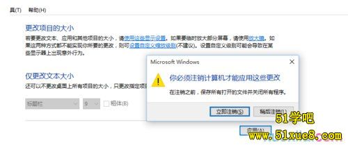 最后一步:然后,計(jì)算機(jī)會(huì)提示你“你必須注銷計(jì)算機(jī)才能應(yīng)用這些修改”,點(diǎn)擊“立即注銷”,之后從新進(jìn)入Windows10,此時(shí)程序上的模糊字體就變得清晰了,問題輕松就能解決掉了。
