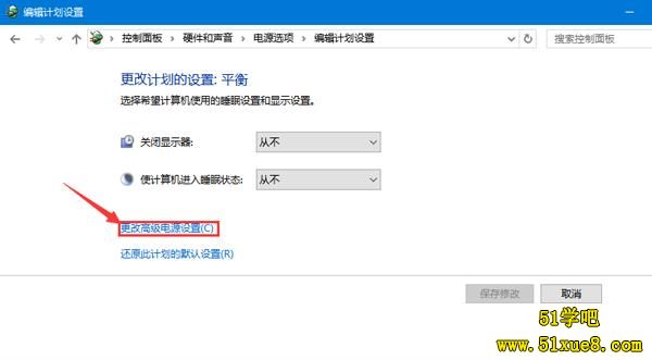 4、此時在編輯計劃設(shè)置窗口中,我們打開更改高級電源設(shè)置,如圖所示: